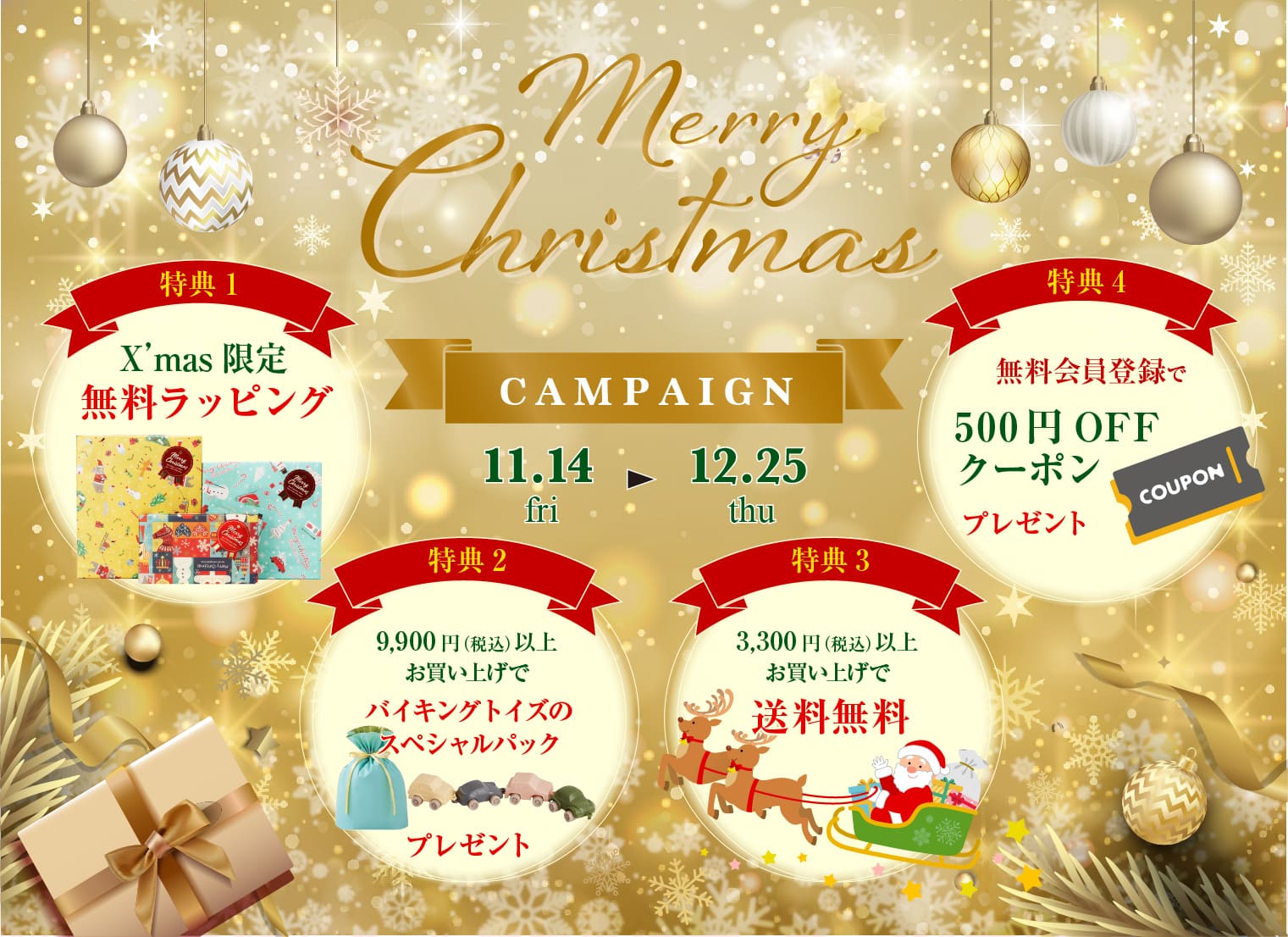 クリスマスキャンペーン期間中は、3,300円(税込み)以上のお買い上げで送料無料!