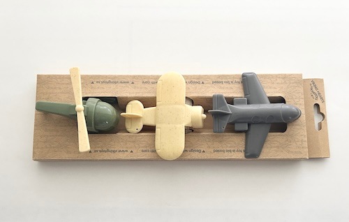 全長8〜9cmのプロペラ機、ジェット機、ヘリコプターが1個ずつ入ったセット。ヘリコプターのプロペラは手でくるくる回して楽しめます。